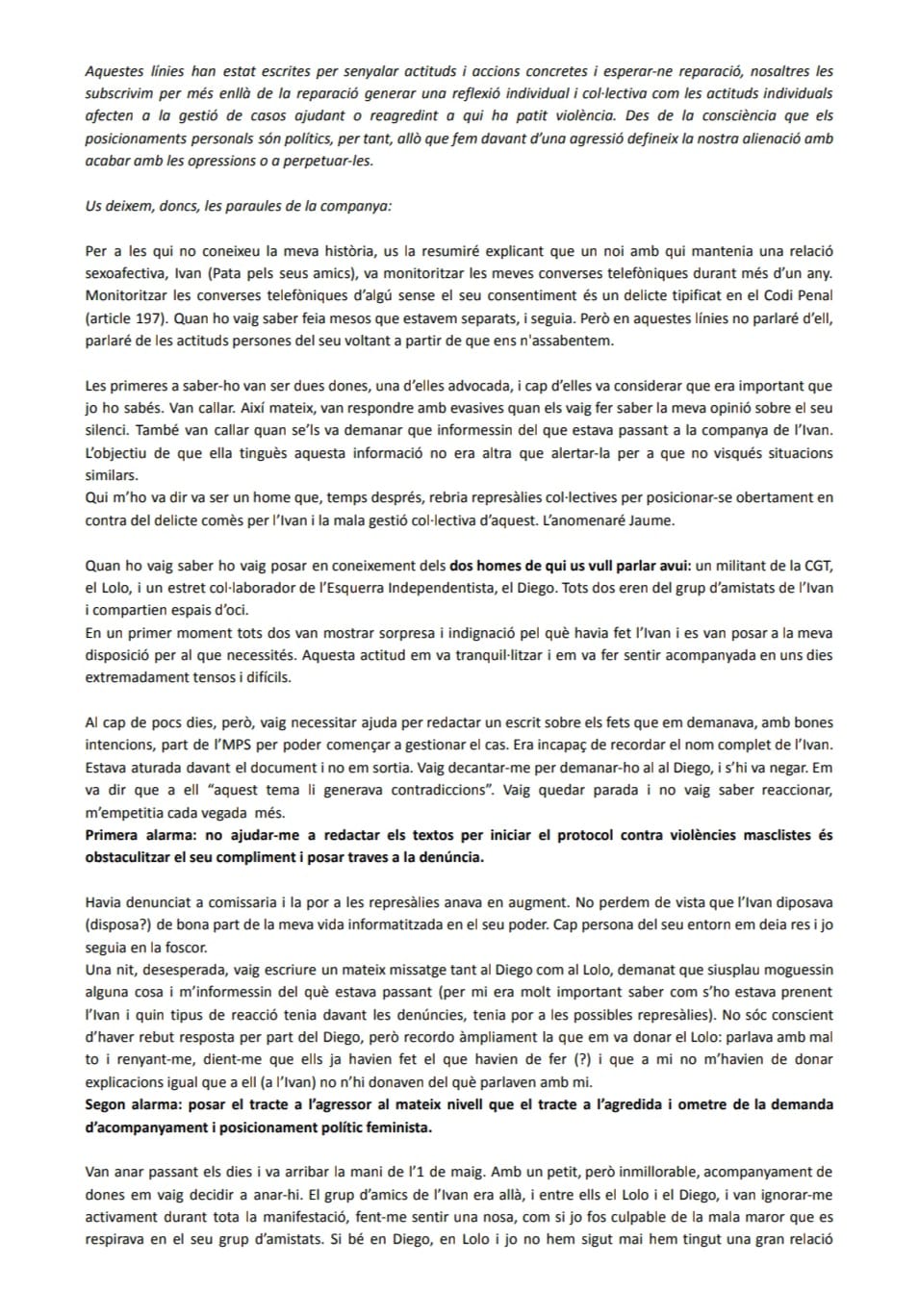 Us demano que el llegiu amb cura i que cuideu molt de qui passa processos com aquest.